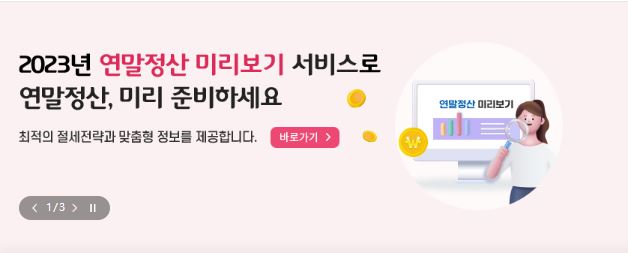 국세청 홈택스 접속 → 메인에 떠 있는 연말정산 미리보기 서비스